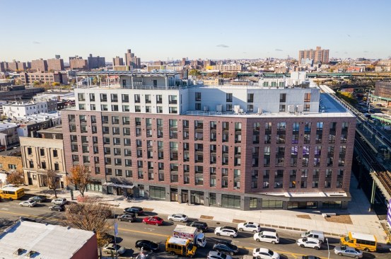 Developed by Pennrose and RiseBoro Community Partnership, the 100% affordable community features 218 units for residents ranging from those who were formerly or at risk of homeless to households earning up to 80% of the area median income. There are 56 studio, 96 one-, 48 two-, and 18 three-bedroom units.