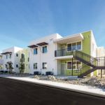 The development has been designed to accommodate the needs of families, including larger units, outdoor picnic tables and barbecues, walking paths, and innovative and structurally artistic play equipment.