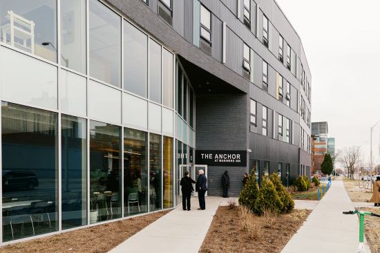 The Anchor doubles Mariners Inn’s capacity and, for the first time, opens its programs to women. The nonprofit is providing a range of services to all residents at the development, which has case management offices, an art therapy room, a fitness center, a computer lab, a courtyard, and other areas to promote interactions.