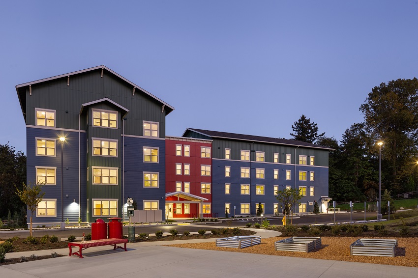 The Arlington Drive Campus for Homeless Youth and Young Adults features two parts. There is a crisis residential center for up to 12 youths 12 to 17 years old that’s managed by Community Youth Services, and there’s an adjacent 58-unit development for previously homeless individuals 18 to 24 years old, with on-site supportive services provided by the Social Impact Center of the YMCA of Greater Seattle.