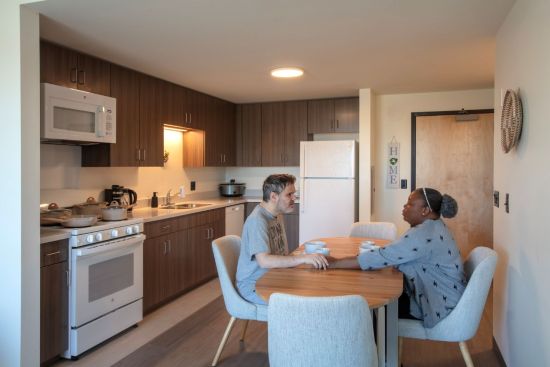 Developed by Brinshore Development and The Chicago Lighthouse, Foglia Residences features affordable studio, one-, and two-bedroom units for residents earning no more than 30%, 60% and 80% of the area median income.