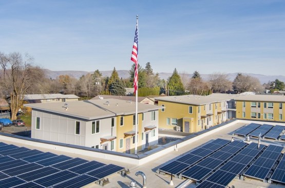 On-site social services include a full-time resident services coordinator, two veterans’ benefit coordinators, and a medical and dental clinic run by Yakima Neighborhood Health. Other service providers include Blue Mountain Action Council, American Legion, and the VFW. In addition, community groups are providing a weekly food pantry and household items as needed for residents.