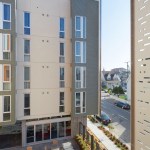 However, one of the biggest challenges was assembling the land necessary to develop the 110,000-square-foot, five-story project. SAHA had to negotiate the acquisition of multiple parcels from different owners in a volatile real estate market. First, the nonprofit, in partnership with the Oakland Housing Authority, worked out the purchase of a parking lot belonging to another housing development. As part of the deal, SAHA developed a plan for replacement parking that involved podium parking with an easement. Although this first parcel could have been developed by itself, the team negotiated the purchase of additional land from two separate owners, allowing SAHA to create a more significant project that wraps around the block.