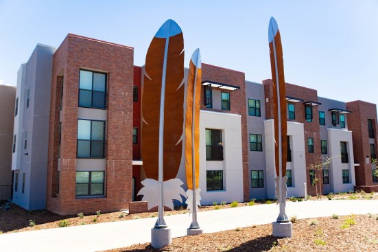 The housing development boasts community spaces, outdoor green spaces, and play equipment for children. With support from Placer Community Foundation, local artists Norm Tucker and Stan Padilla created artwork for the grounds that honors the area’s Maidu, Miwok, and Nisenan tribes and affirms the power of the area’s natural elements.