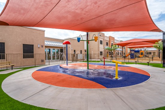 Avalon Villas was specifically designed for households with children—and it shows. The 94-unit South Phoenix development boasts an expansive, shaded splash pad, multiple play structures, a dog park, and an on-site Head Start classroom.
