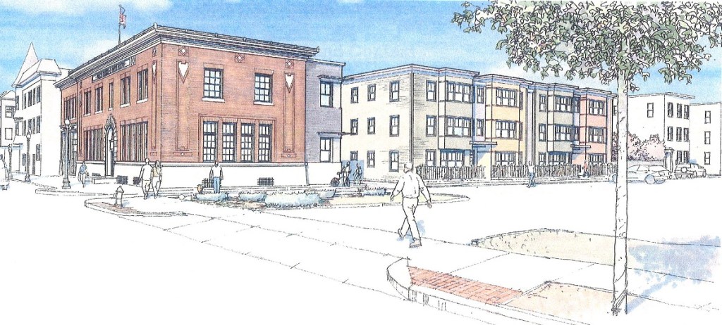 Patriot Homes will feature two buildings, including the rehabilitation and adaptive reuse of a two-story former police sub-station and a new three-story building. Development amenities will include a community room with a kitchen and a common laundry.