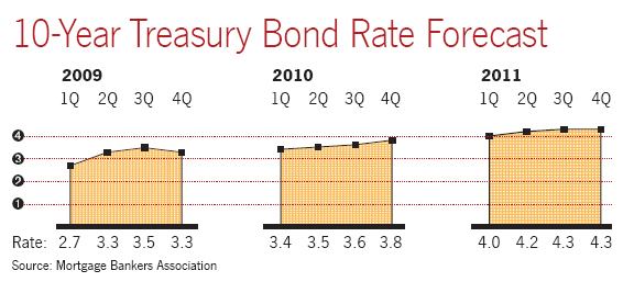 The yield on the benchmark Treasury note is expected to rise next year. The future of Fannie Mae and Freddie Mac will be taken up by Congress in 2010, and many industry players are anxious to see how the GSEs will move forward. And a swift return of substantial job growth is not in the cards for 2010.