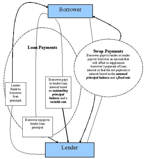 The synthetic fixed-rate loan consists of two transactions. First, the borrower obtains from the lender a variable-rate loan that requires monthly payments of interest and possibly periodic payments of principal. Second, the borrower enters into an interest-rate swap with the lender as swap provider. The swap establishes a “fixed rate” and includes a schedule of “assumed principal balances” to approximate what the parties expect to be the outstanding principal balance of the loan over time.