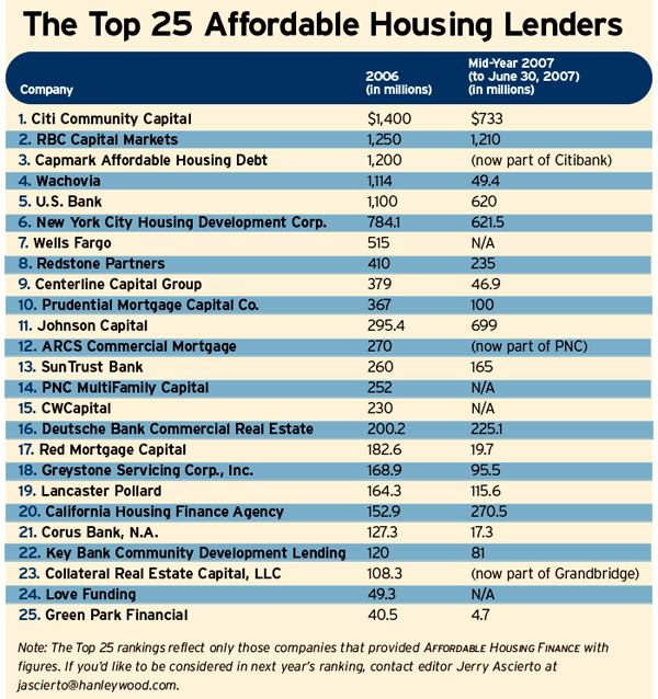 Citi Community Capital heads our list of the top affordable housing lenders, a spot it should retain next year due to its acquisition of No. 3 lender Capmark’s Affordable Housing Debt group (CAHD) (for more on the acquisition, see page 32).