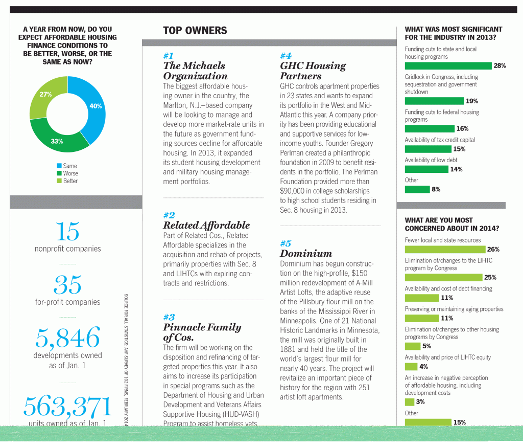 At the top, once again, is The Michaels Organization, of Marlton, N.J., by far the largest owner, with 46,405 affordable housing units in 355 developments.