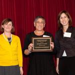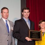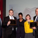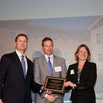 The best historic rehab honor goes to Saint Luke’s Manor in Cleveland, developed by Pennrose Properties, LLC, and Neighborhood Progress, Inc. Pictured are Ryan Bailey (center), a Pennrose development officer; Sean Thomas from the Ohio Housing Finance Agency; and Affordable Housing Finance Executive Editor Christine Serlin.
