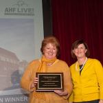 The winner of the preservation category is Harold Washington Apartments in Chicago, developed by Mercy Housing Lakefront. Cindy Holler (left), president of Mercy Housing Lakefront, accepts the award from Affordable Housing Finance Executive Editor Christine Serlin.