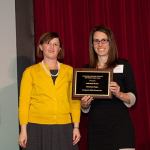 The winner of the seniors category is Fair Oaks Plaza in Sunnyvale, Calif., developed by MidPen Housing Corp. Abby Goldware (right), a project manager at MidPen Housing, accepts the award from Affordable Housing Finance Executive Editor Christine Serlin.