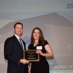 Alta Vista de la Montana in Delta, Colo., which was developed by Community Resources and Housing Development Corp., took the top honor in the rural category. Robin Wolff, director of marketing and resource development at Community Resources and Housing Development Corp., accepts the award from David Leopold, senior vice president of Bank of America Merrill Lynch.