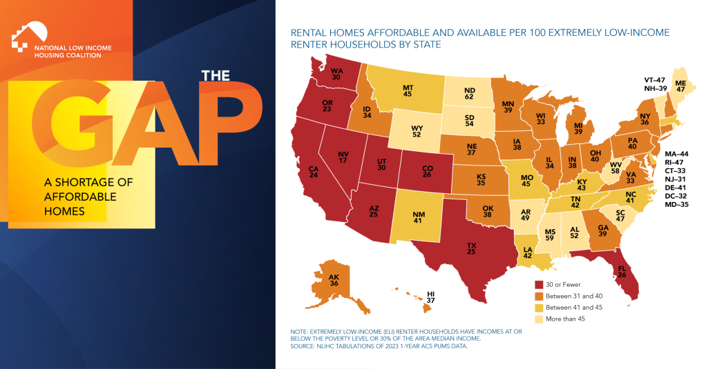 In its annual “The Gap: A Shortage of Affordable Homes” report, NLIHC finds there are only 35 affordable and available homes for every 100 extremely low-income renter households.