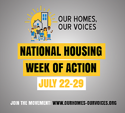Advocates around the country will be calling for increased federal investment in affordable housing and community development during a national week of action called Our Homes, Our Voices, beginning Saturday, July 22.